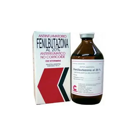 FENILBUTAZONA al 20% is a powerful antiinflammatory and antirrheumatic based on sodium phenylbutazone for the treatment of rheumatism in all its forms and localizations. The product attacks the trio muscular inflammation-pain-spasm, removing the inflammation and spasm, thus making pain disappear, myoarticular function reestablish. Muscular tone becomes normal.